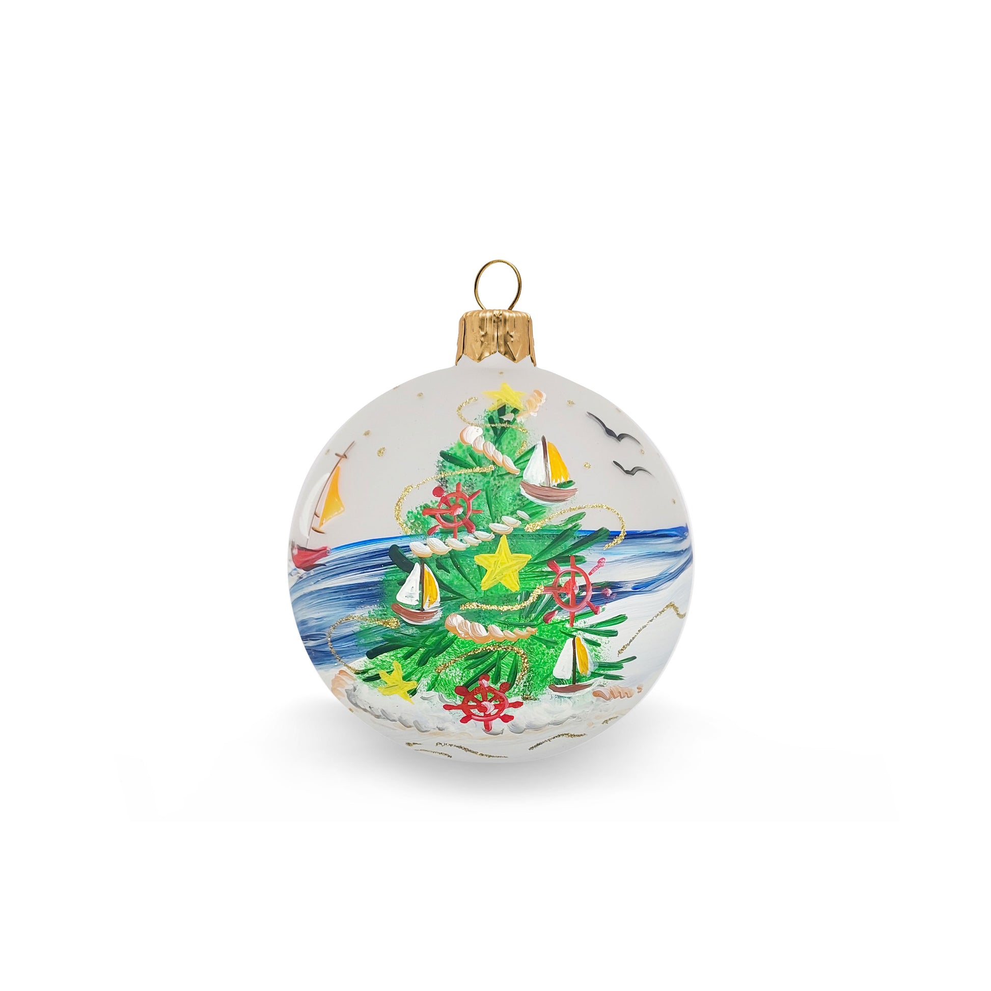 Hand painted, subject of Christmas tree on the beach.