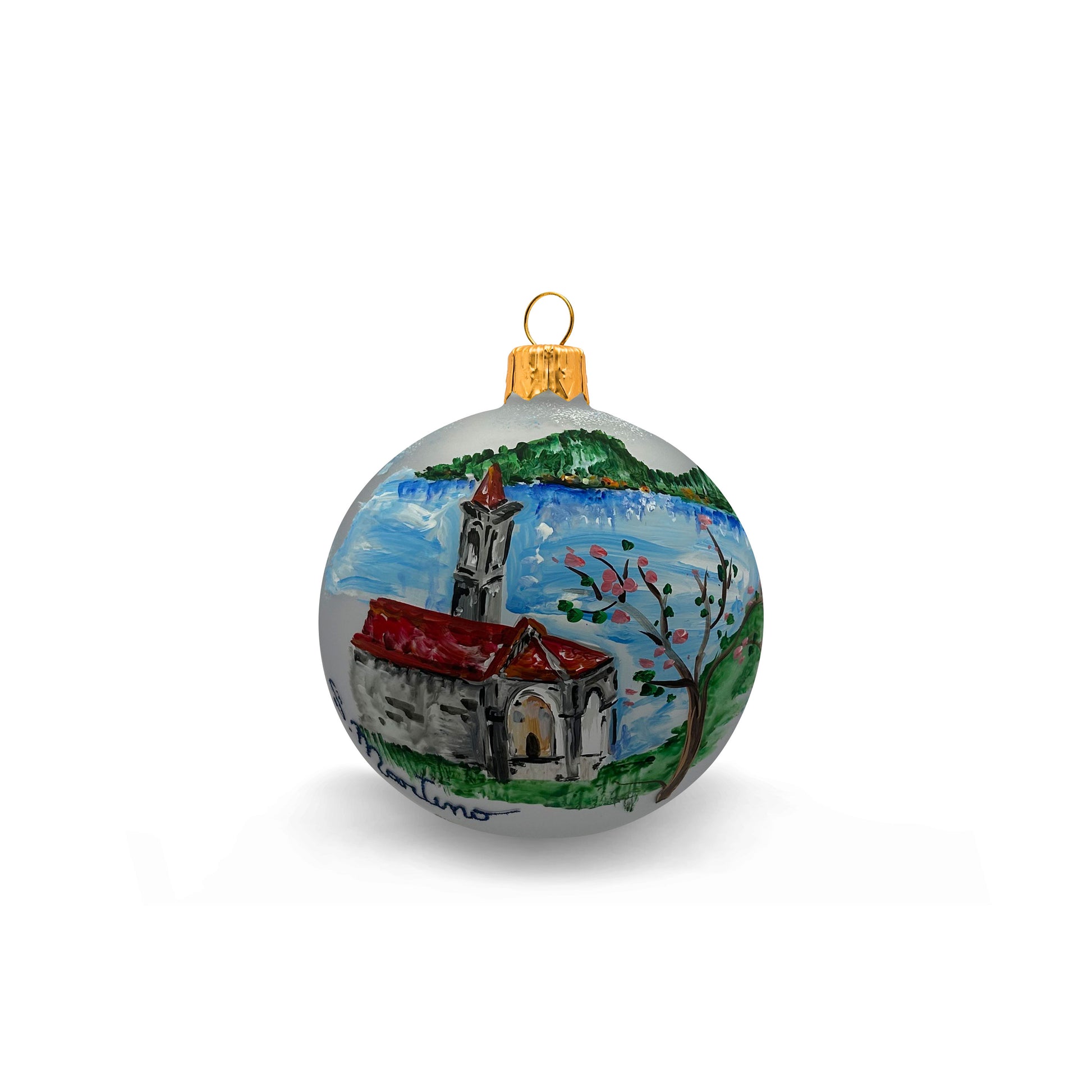Hand painted, decoration Bellagio and church of San Martino.
