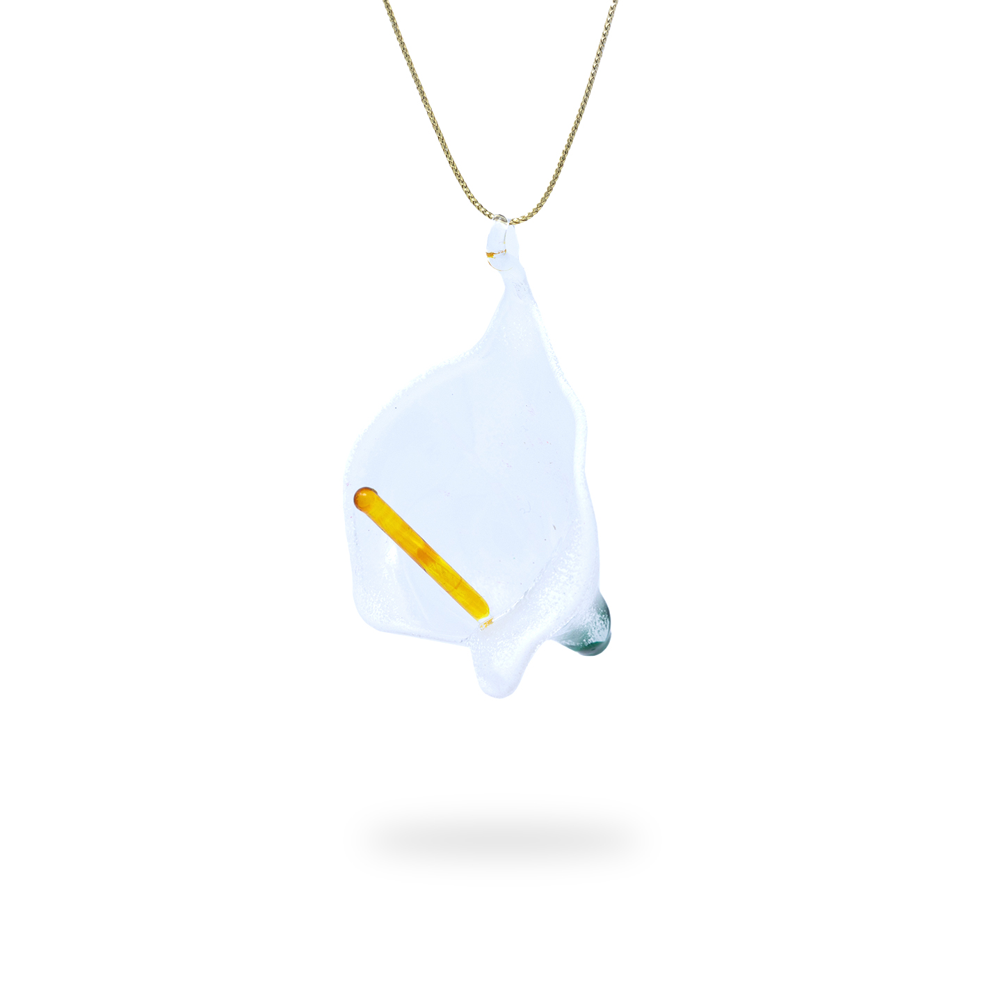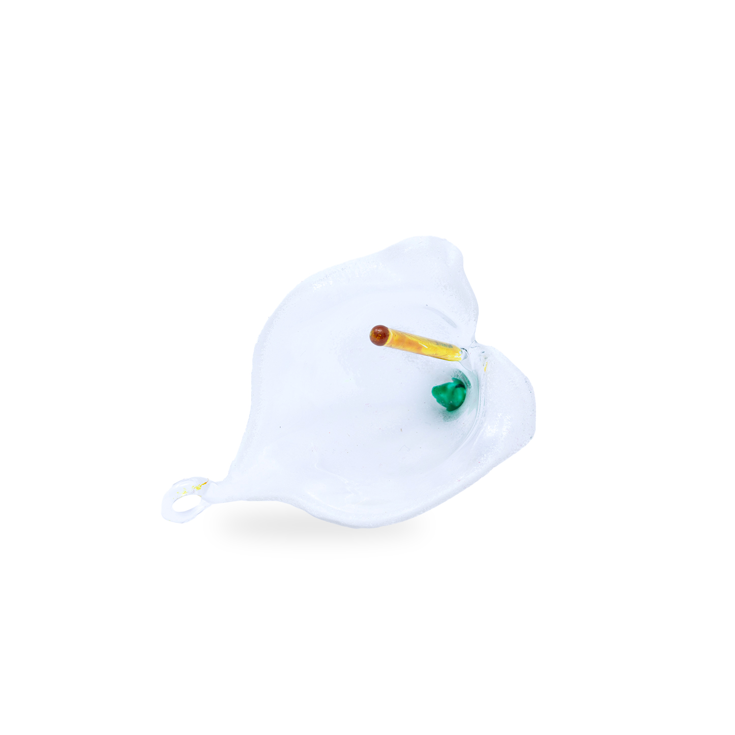 Calla in vetro soffiato trasparente H 9 cm con decoro giallo e verde, da appendere.