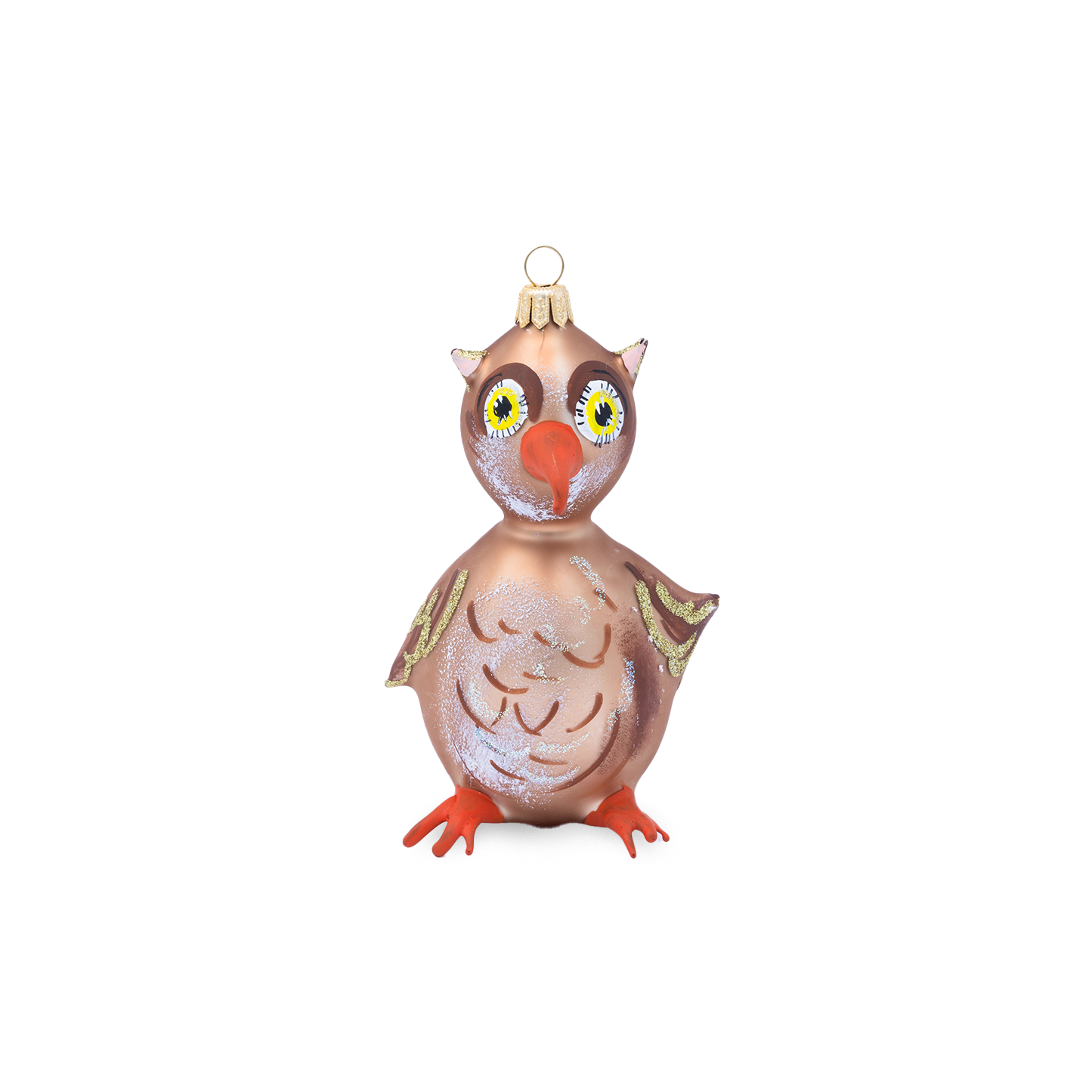 Gufo, in vetro soffiato marrone. H. 12 cm
