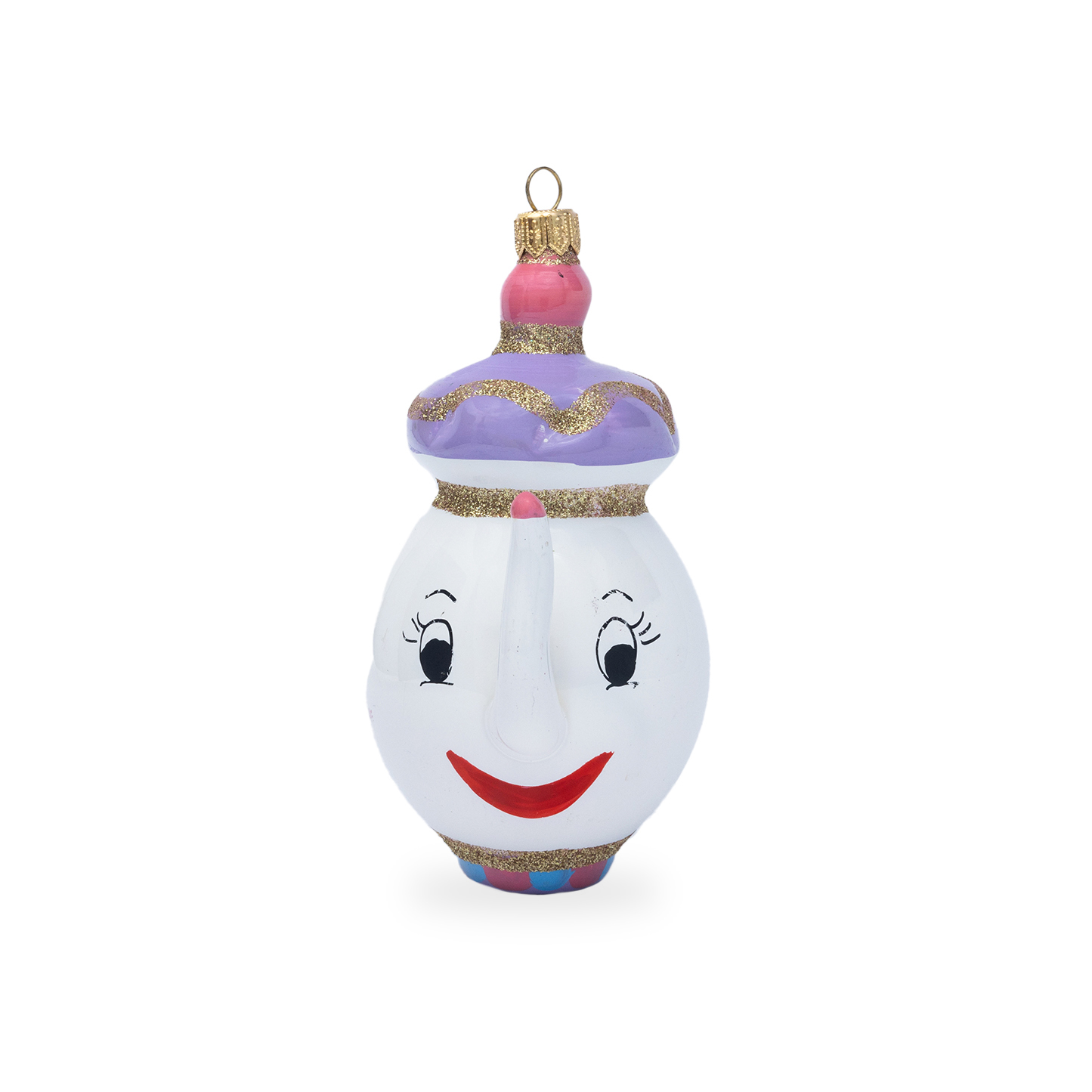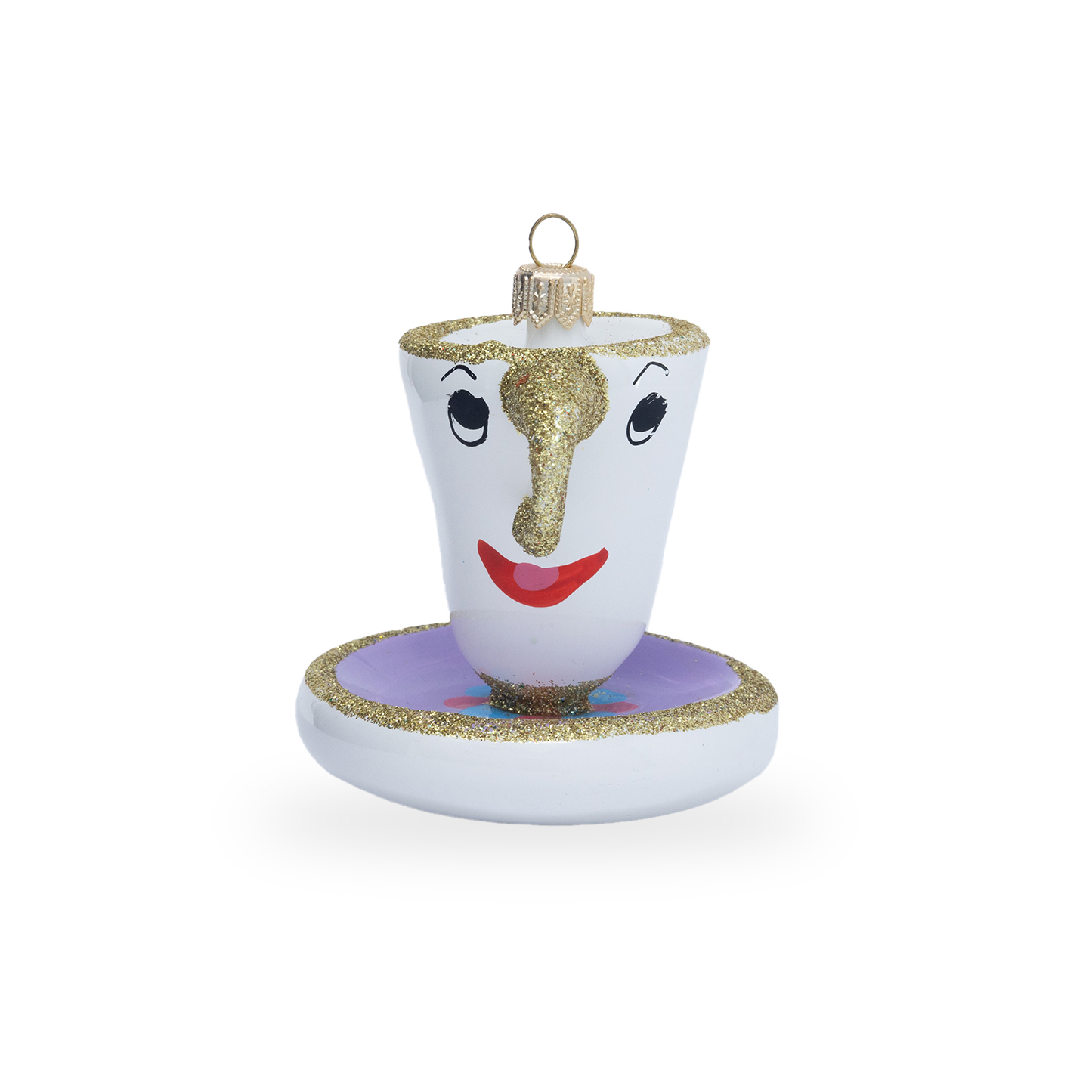 Set tazzina e teiera , in vetro soffiato bianco laccato, H. 6cm,